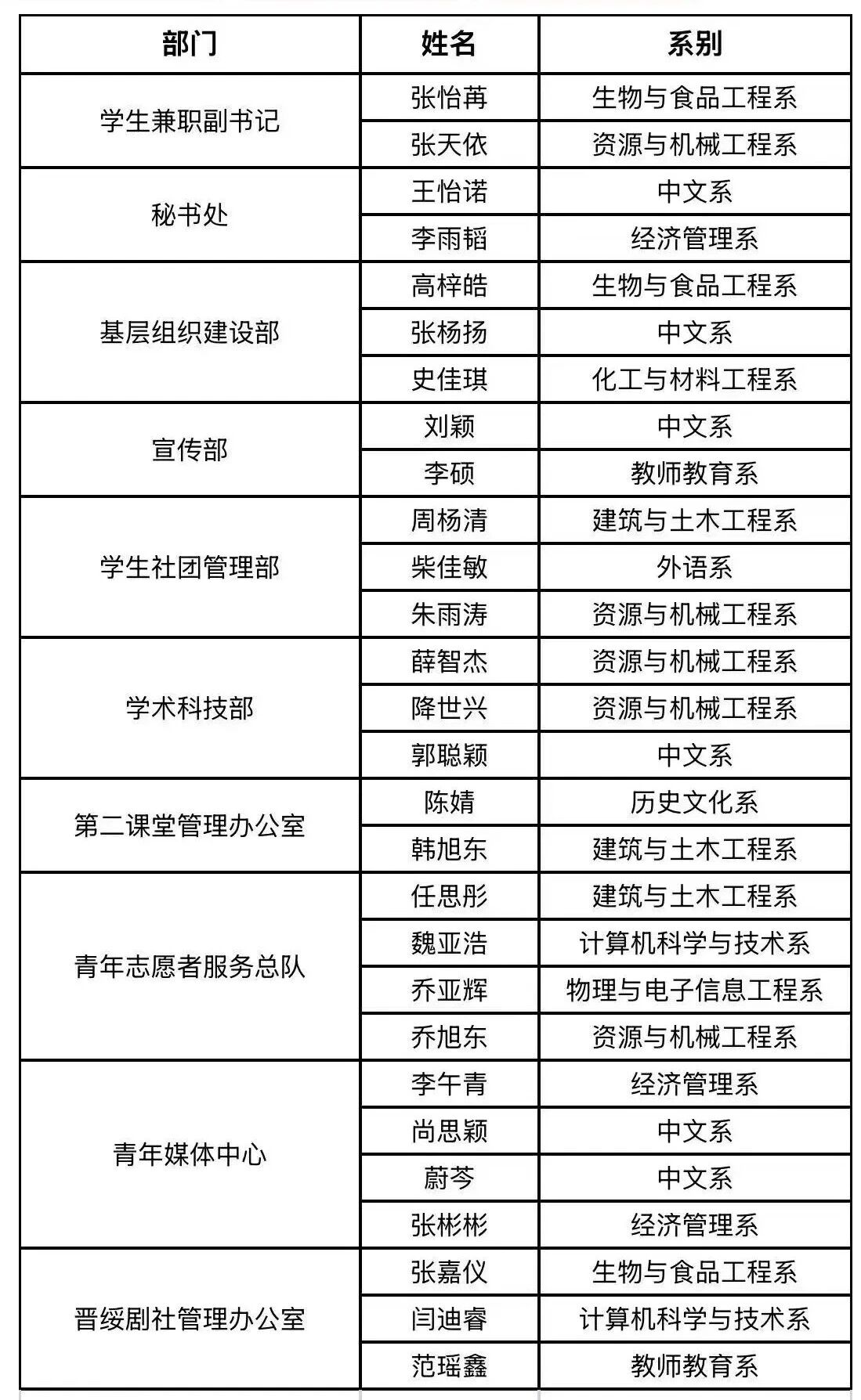 为深入推进共青团改革,全面提升团学工作水平,按照团省委、省教育厅《关于深化学校共青团改革的通知》要求,培养和锻炼一支高素质的学生干部队伍,服务青年学生的成长成才,增强学生工作人员的社会工作能力,培育学生骨干的社会责任感和服务意识,经研究决定,面向全校团员公开选拔校团委工作人员,现公示如下:
