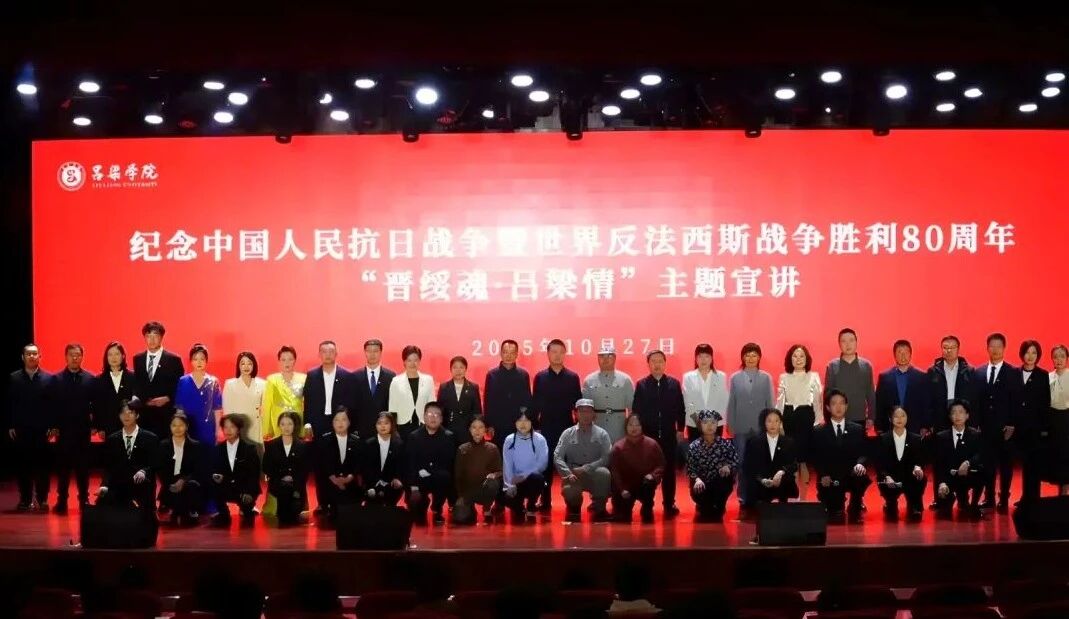 10月27日晚,由我校团委、马克思主义学院主办,晋绥剧社承办的纪念中国人民抗日战争暨世界反法西斯战争胜利80周年“晋绥魂·吕梁情”主题宣讲在弘智楼一层报告厅开讲,校党委书记薛晋文,党委副书记、校长铁军,党委常委、纪委书记张雪航,党委常委、副校长刘宝琦,党委常委、副校长张云奇,相关职能部门负责人、各系学生代表共计600余人到场参加。