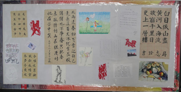 此次文化作品展的征集,面向吕梁学院全体学生,目的是挖掘学生的文化潜力以及创作能力。展出的作品内容丰富,主要有毛笔书法、素描、剪纸、水粉及其它手工制品。无论是从丝巾上的中国地图,还是从“瓜子皮”制作而成的中国国旗,都能巧妙地展示我院学生的创意;无论是从挥洒有力的隶书,还是漂亮大方的行书,都能完美地展现我院学生较高的文化素养。文化作品展出后,吸引了广大学生的广泛关注,优秀文化作品逐渐成为我院学生茶余饭后闲聊的焦点。